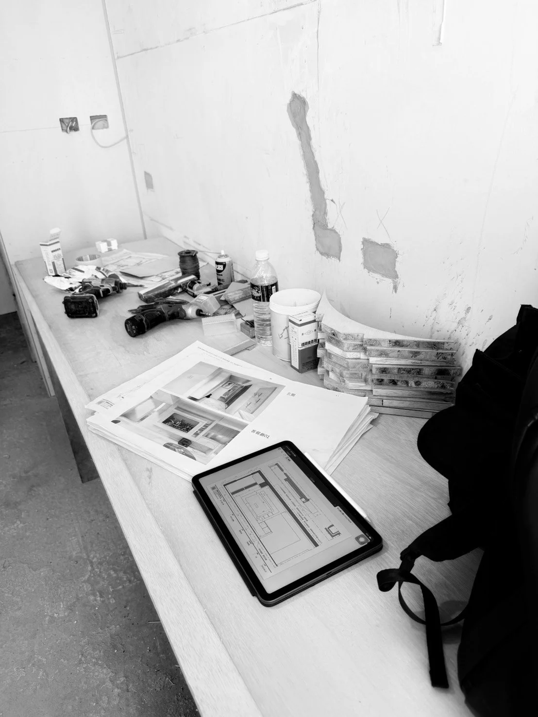即便 3D 模擬圖能精準呈現空間感與光影比例,但「生活」是有觸感的。透過螢幕,材質的表面紋理被像素化,顏色的真實度也因光學失真而顯得索然。對於追求空間轉譯的我而言,如果無法讓屋主真實感受到木皮的粗糙度、石材的冰冷感或是布料的柔軟,那麼設計就僅止於視覺,而無法觸及生活。